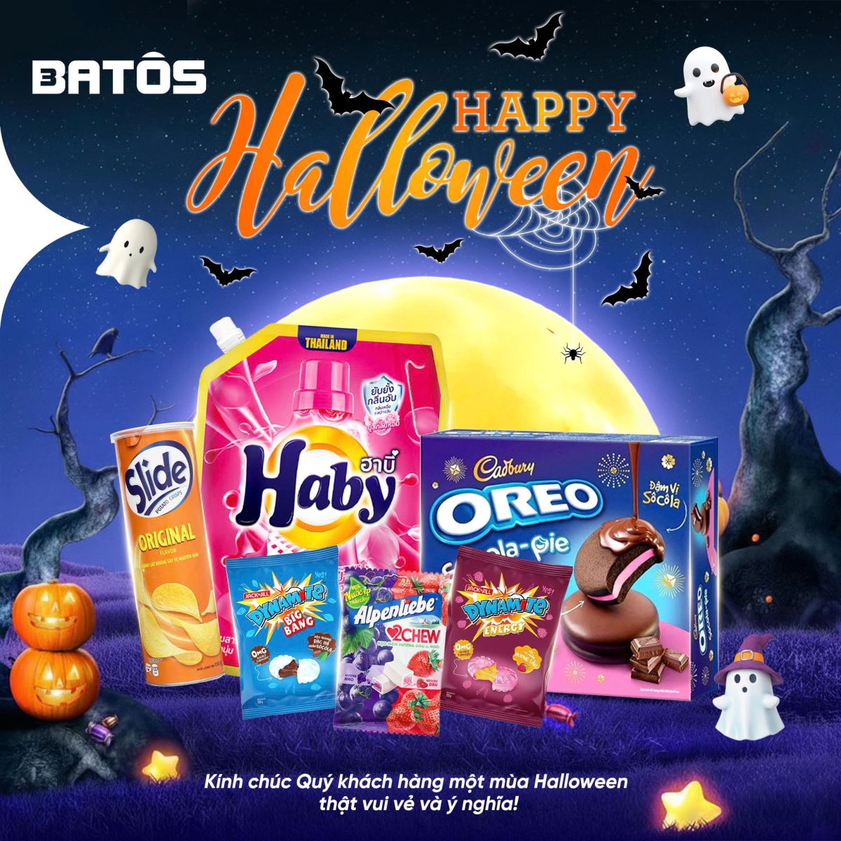 Nhân dịp lễ hội Halloween năm 2025, Batos xin gửi lời chúc chân thành và tốt đẹp nhất đến toàn thể Quý vị cùng gia đình. Chúc Quý vị có một mùa lễ hội ý nghĩa, vui vẻ và ngập tràn khoảnh khắc đáng nhớ.