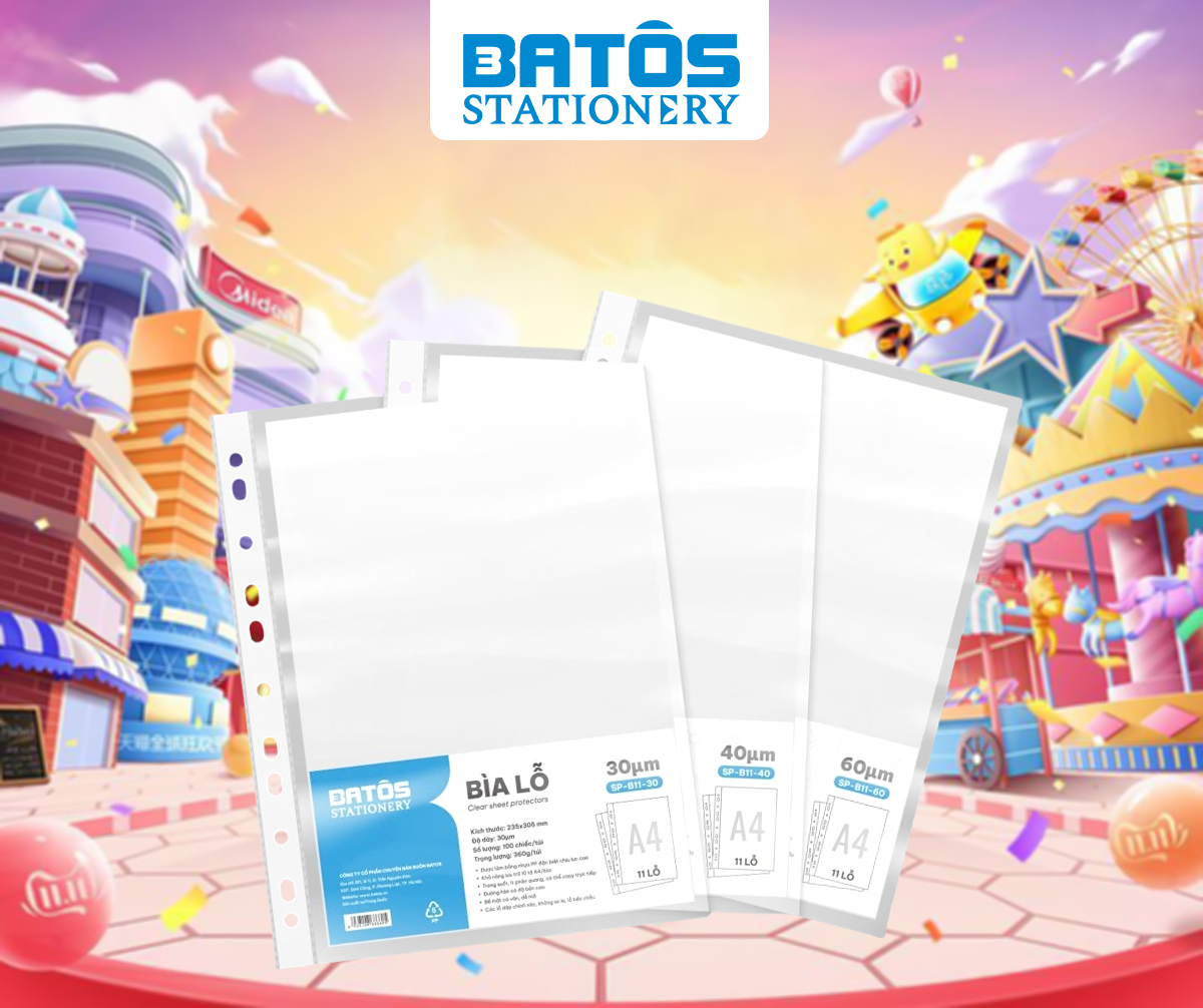 Batos tự hào là đơn vị phân phối trực tiếp các dòng bìa lỗ Batos với đa dạng độ dày, từ loại mỏng tiết kiệm chi phí đến loại dày cao cấp, đáp ứng linh hoạt nhu cầu của cá nhân, văn phòng và doanh nghiệp.