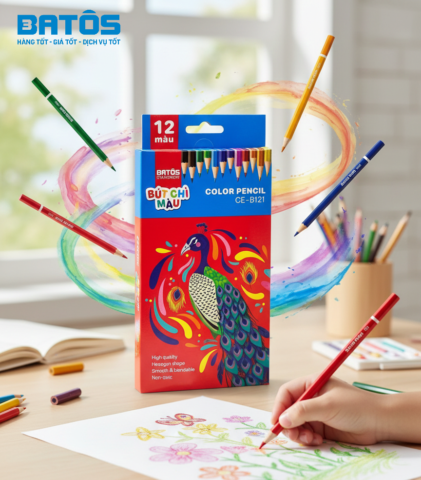 Hãy để bút chì màu Batos Stationery trở thành công cụ không thể thiếu trong mọi hoạt động học tập và sáng tạo của bạn! Liên hệ Batos ngay để nhận bảng báo giá sỉ tốt nhất cho các dòng bút chì màu chất lượng cao!