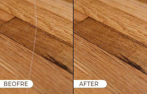 Sắc tố tự nhiên trong cà phê sẽ giúp lấp đầy phần gỗ bị bạc màu do trầy xước, từ đó làm cho khu vực này trở nên đồng nhất hơn với bề mặt xung quanh.