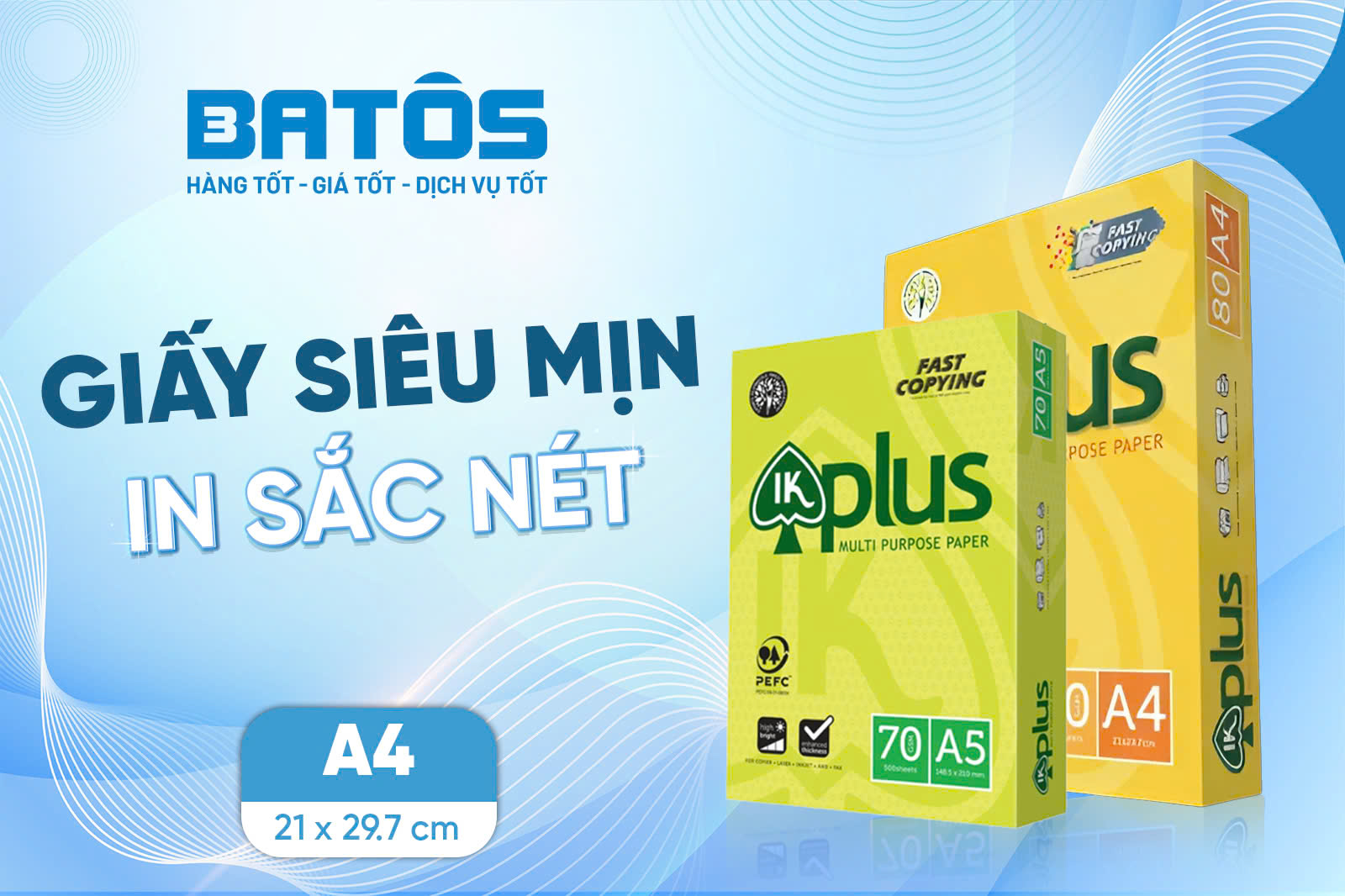Batos là địa chỉ cung cấp giấy in A4 uy tín, đáp ứng đầy đủ các định lượng phổ biến như 70gsm, 80gsm, phù hợp cho nhiều mục đích sử dụng khác nhau từ in nội bộ đến in tài liệu quan trọng. Nguồn hàng ổn định, giấy đạt tiêu chuẩn giúp khách hàng yên tâm sử dụng lâu dài.