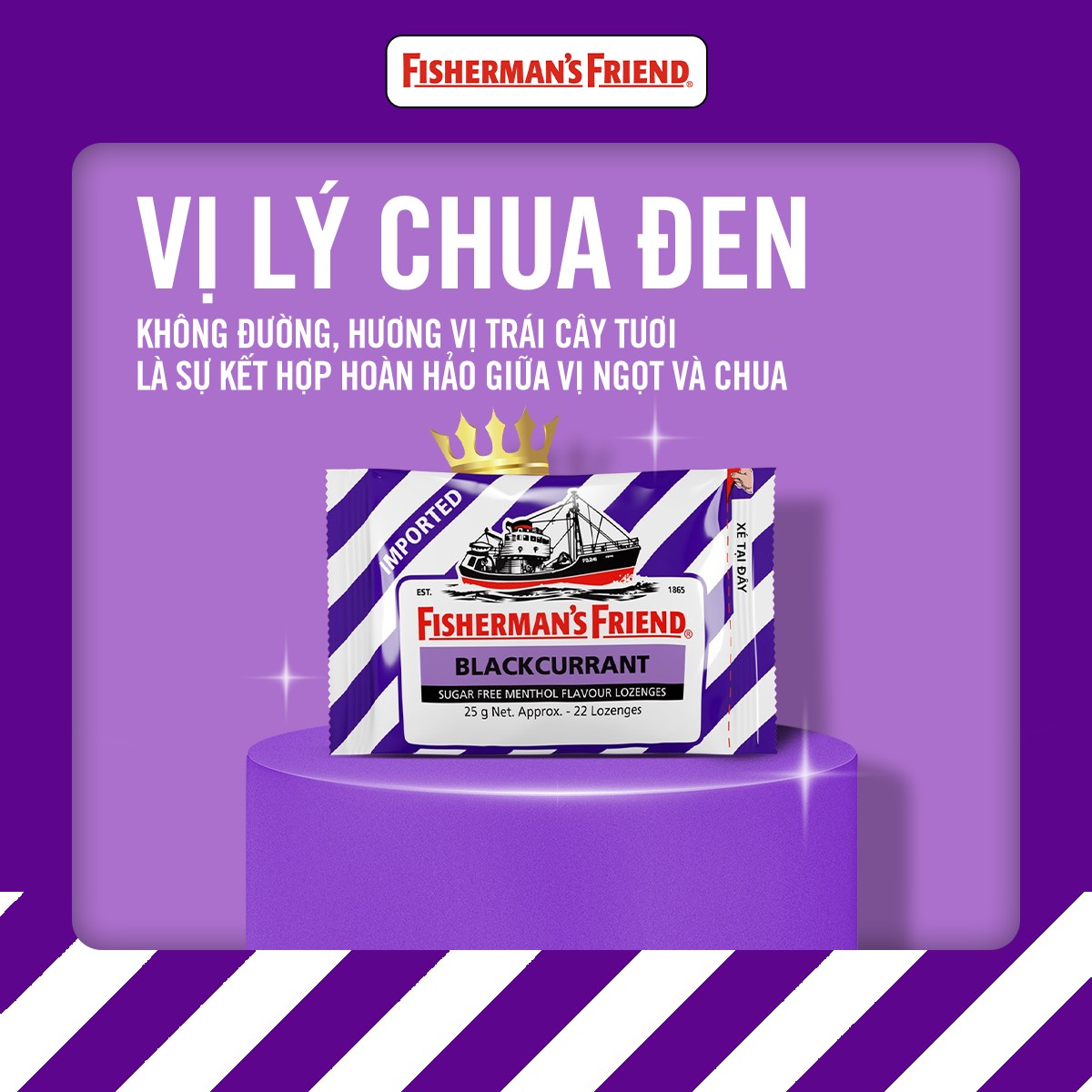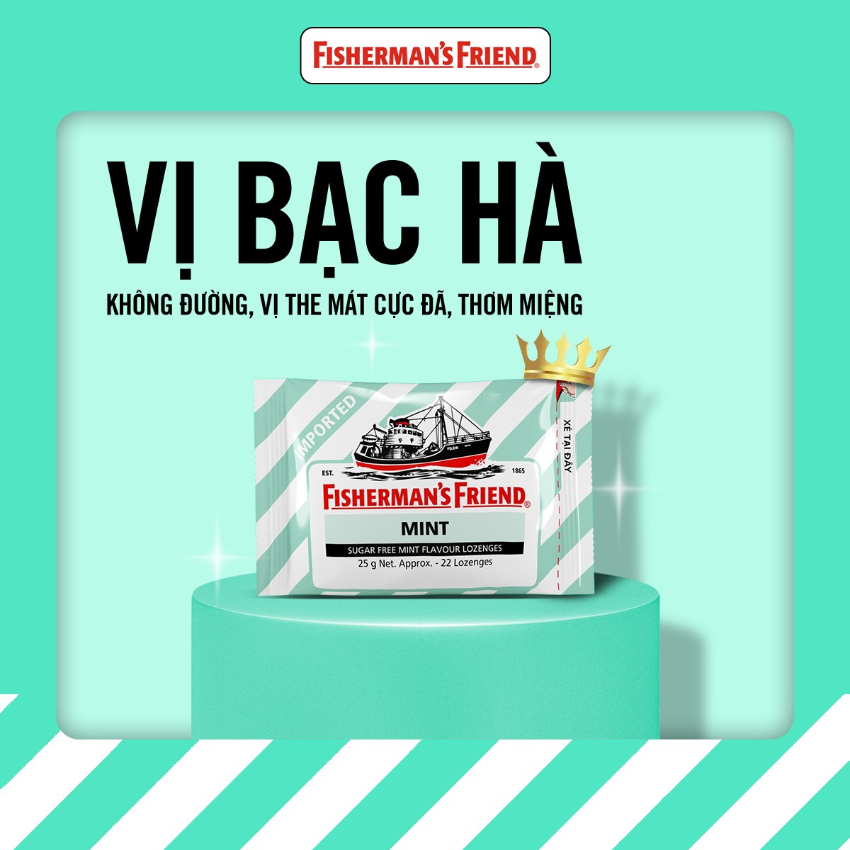 Fisherman’s Friend là thương hiệu kẹo ngậm nổi tiếng có nguồn gốc từ Vương quốc Anh, được nhiều người tiêu dùng trên thế giới biết đến nhờ hương vị bạc hà mạnh mẽ và khả năng hỗ trợ làm dịu cổ họng hiệu quả. Hiện nay, các sản phẩm của thương hiệu được sản xuất tại Malaysia theo quy trình kiểm soát chất lượng nghiêm ngặt, đảm bảo đáp ứng các tiêu chuẩn an toàn thực phẩm quốc tế.