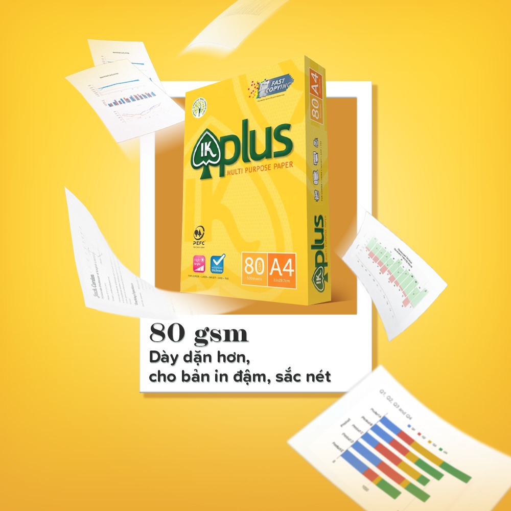 Với giấy in IK Plus, mọi nhu cầu in ấn từ cơ bản đến nâng cao đều được đáp ứng một cách toàn diện, giúp doanh nghiệp duy trì hiệu suất công việc và hình ảnh chuyên nghiệp trong từng trang giấy.