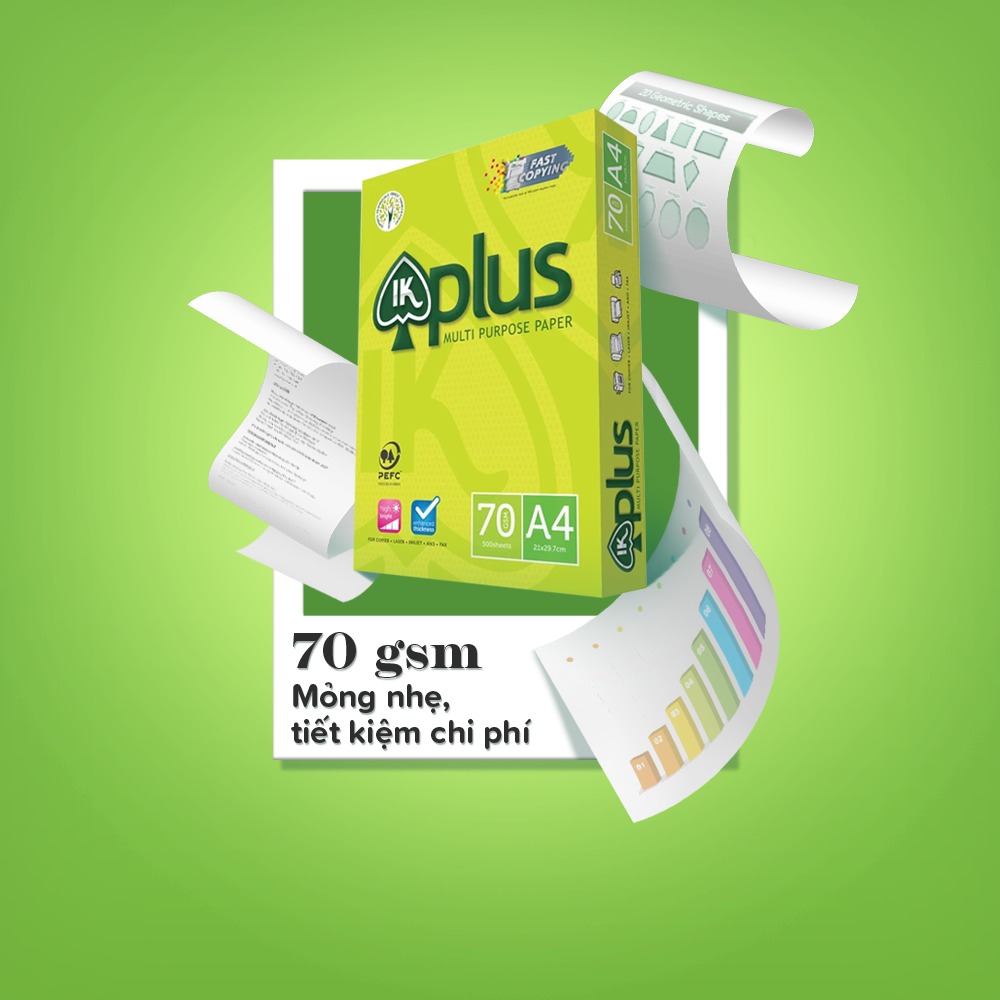 Với chất lượng giấy ổn định, mịn, bề mặt đồng nhất và khả năng chịu mực tốt, giấy in IK Plus giúp công việc in ấn, photo và scan trở nên chuyên nghiệp, nâng cao hiệu quả công việc.