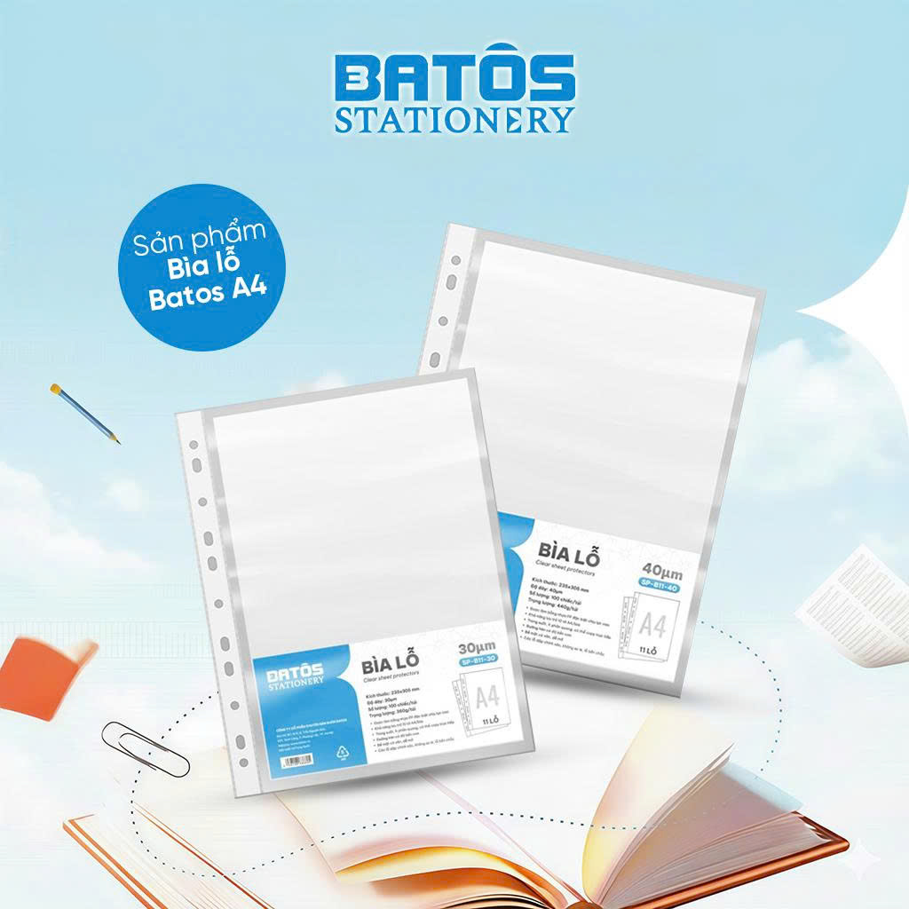 Với những lựa chọn này, bạn có thể dễ dàng sở hữu bìa lỗ Batos chính hãng, đảm bảo công việc văn phòng luôn ngăn nắp, chuyên nghiệp và thuận tiện trong mọi thao tác lưu trữ tài liệu.