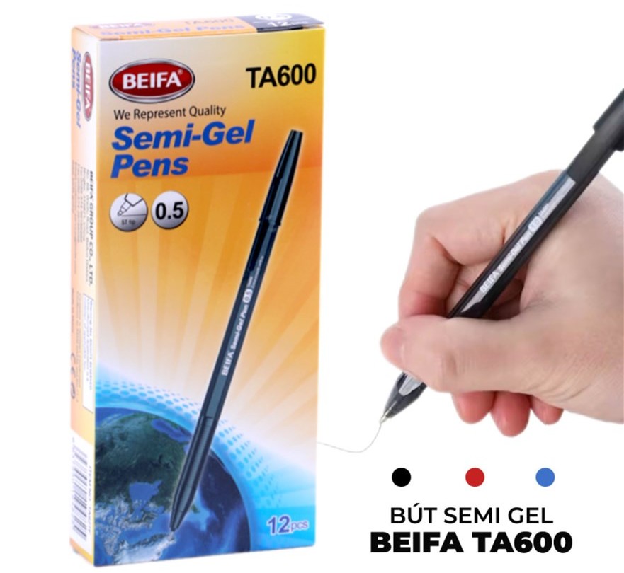 Bút bi Beifa TA600 là dòng bút semi gel được thiết kế nhỏ gọn, tiện lợi để mang theo và sử dụng lâu dài. Điểm nhấn của sản phẩm là thiết kế hình lượn sóng tại vị trí tì ngón tay, giúp chống trơn tuột, kết hợp nhựa chống mồ hôi, tạo cảm giác cầm chắc chắn.