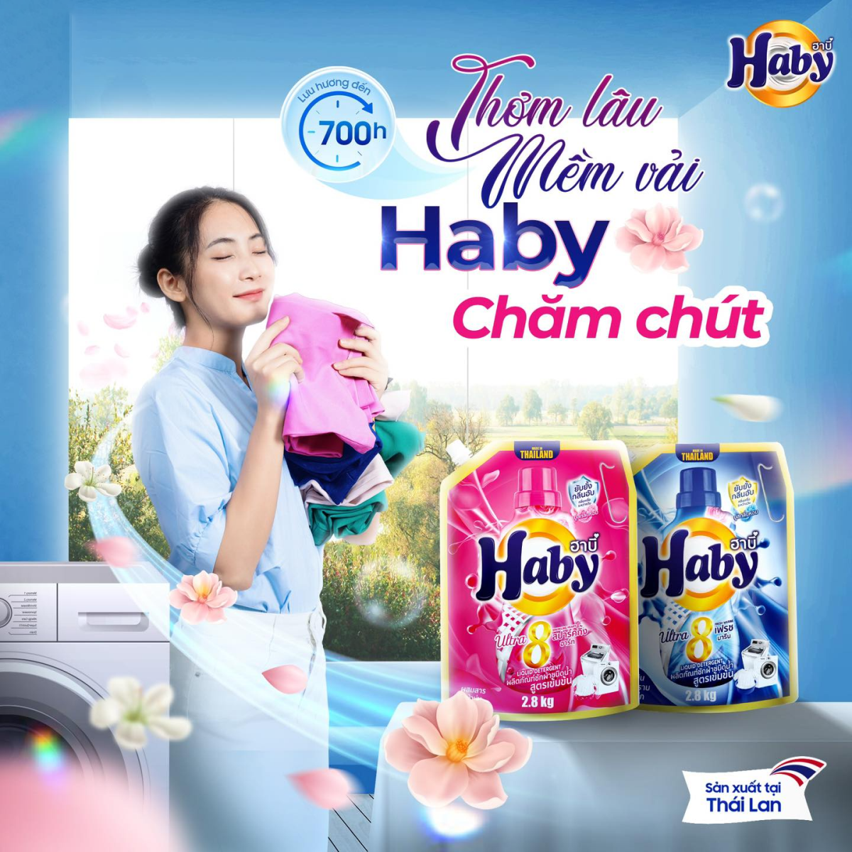 Sử dụng nước giặt Haby cũng giúp tiết kiệm nước và điện năng, rút ngắn thời gian giặt và bảo vệ tuổi thọ máy. Nhờ khả năng kiểm soát bọt vượt trội, Haby mang lại sự yên tâm cho gia đình, giúp quần áo sạch sâu, thơm mát, bền đẹp và duy trì hiệu quả hoạt động của máy giặt cửa ngang.