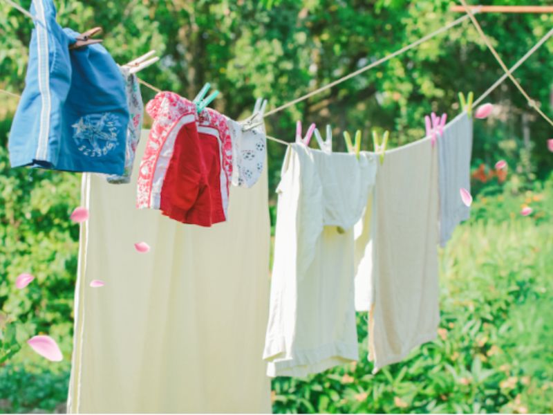 Khi thời tiết tạnh ráo, nên tranh thủ đưa quần áo ra ban công, sân thượng hoặc sân vườn để tăng tốc độ làm khô và giúp quần áo thơm tho hơn.