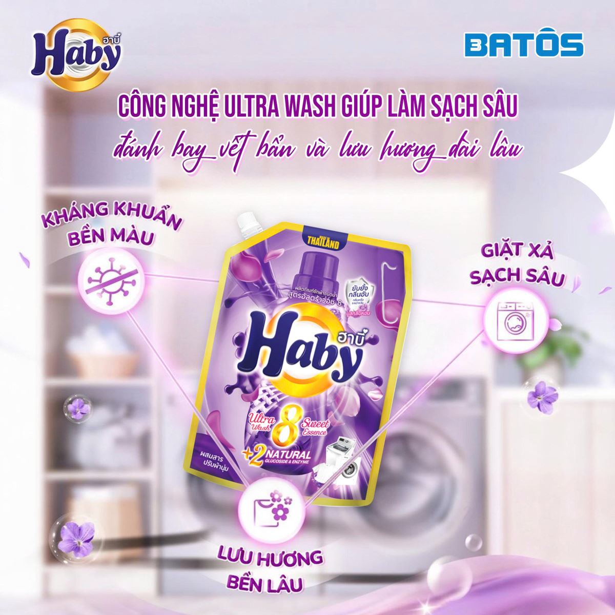 Nước xả vải Haby được nhiều người tiêu dùng lựa chọn nhờ khả năng lưu hương tốt và an toàn cho sợi vải. Bên cạnh đó, một số dòng sản phẩm còn tích hợp tính năng kháng khuẩn, hỗ trợ giảm thiểu vi khuẩn gây mùi, đồng thời giúp quần áo khô nhanh hơn trong điều kiện thời tiết ẩm.