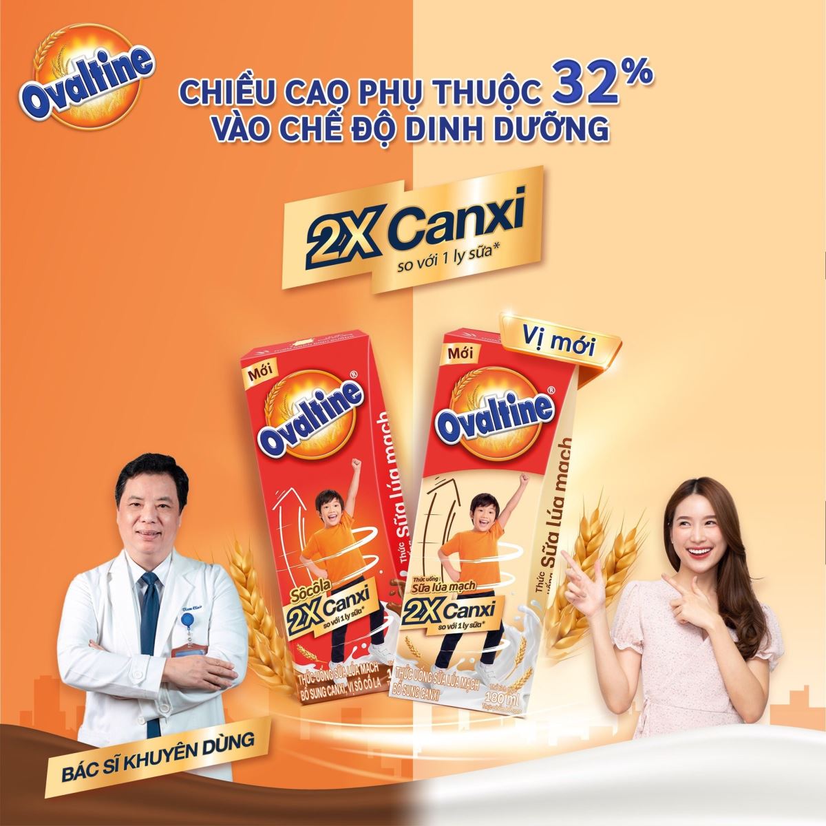Các dòng sản phẩm Ovaltine tăng cường Canxi, tiêu biểu như: Ovaltine X2 Canxi, được thiết kế nhằm đáp ứng nhu cầu này, góp phần hỗ trợ xương và răng phát triển chắc khỏe, tạo nền tảng vững chắc cho chiều cao tối ưu.