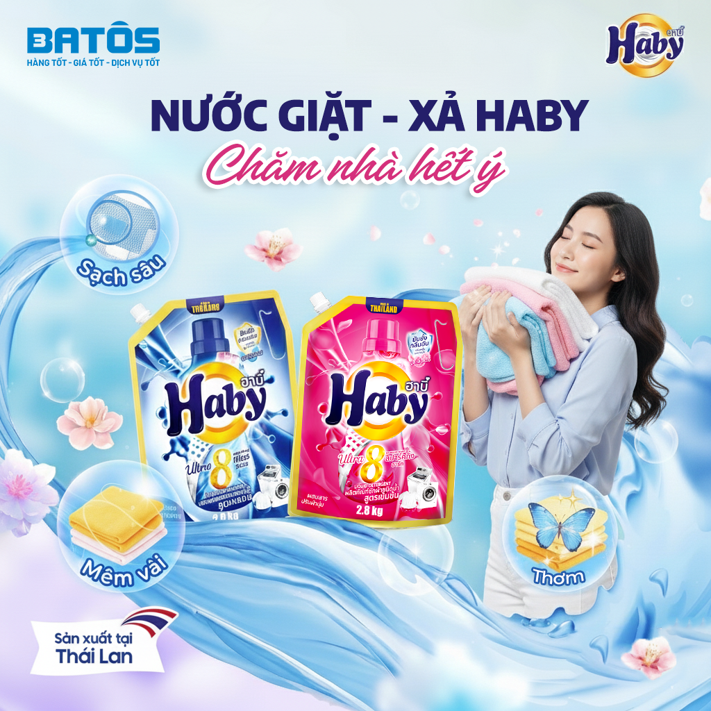 Trong đó, nước giặt xả Haby được Batos lựa chọn và phân phối như một giải pháp giặt giũ hiệu quả, kinh tế và phù hợp cho mỗi gia đình Việt.