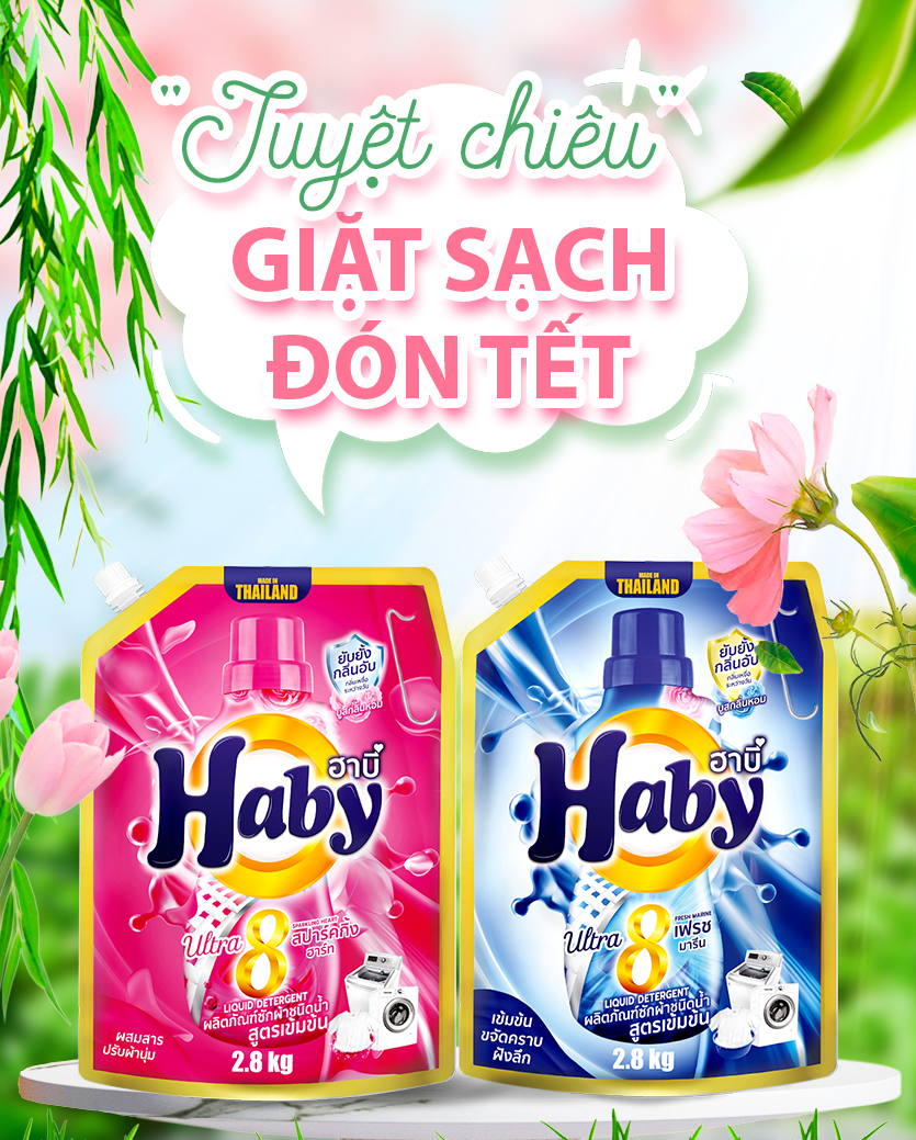 Với khả năng làm sạch hiệu quả, hương thơm dễ chịu và phù hợp cho nhiều loại vải, Haby là lựa chọn lý tưởng để giữ cho rèm cửa và chăn màn trắng sạch như mới, sẵn sàng đón Tết gọn gàng, tinh tươm.